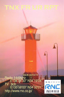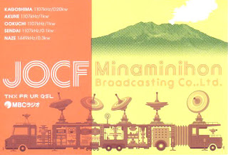 I am posting this note from the balcony of my house as the weather here in Saitama is just excellent. Feel so good on being outside in the morning of weekend :-) Just forget all the tough works on the weekdays, yeah.It has unexpectedly taken so long for me to obtain this QSL card from JOCF - the Minami-nihon Hoso. They are located in the southern island called Kyusyu - and are more than 1,000 km away from here in Saitama. With some heavy interference with other stations on 1107kHz - they cannot easily be observed in our area. Don't you think this QSL card is cool?